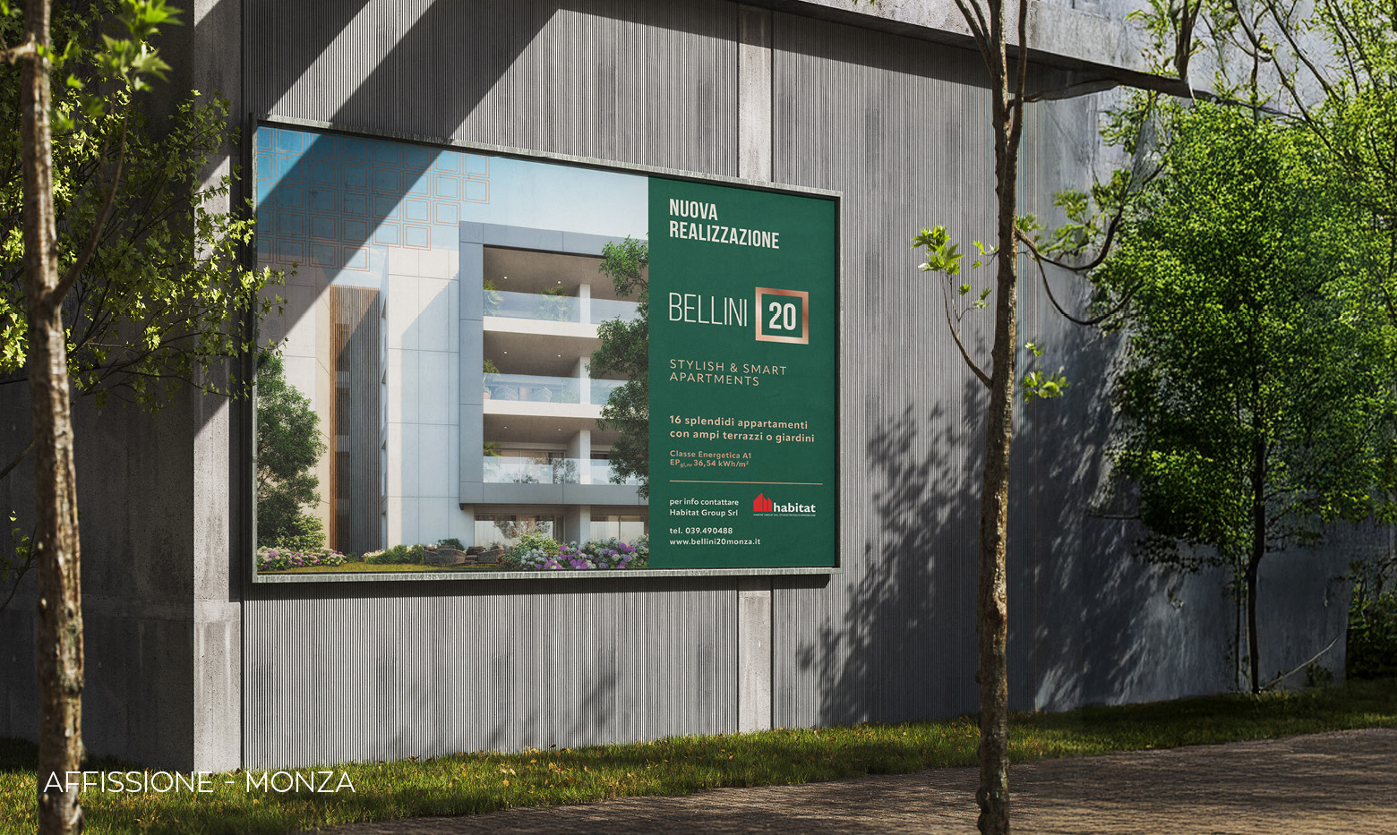 Con Habitat Group abbiamo sviluppato la visual identity completa dell’edificio residenziale di lusso in costruzione a Monza, in via Bellini 20. Abbiamo progettato un’identità capace di valorizzare un’architettura contemporanea che unisce eleganza, comfort e innovazione abitativa nel cuore della città.