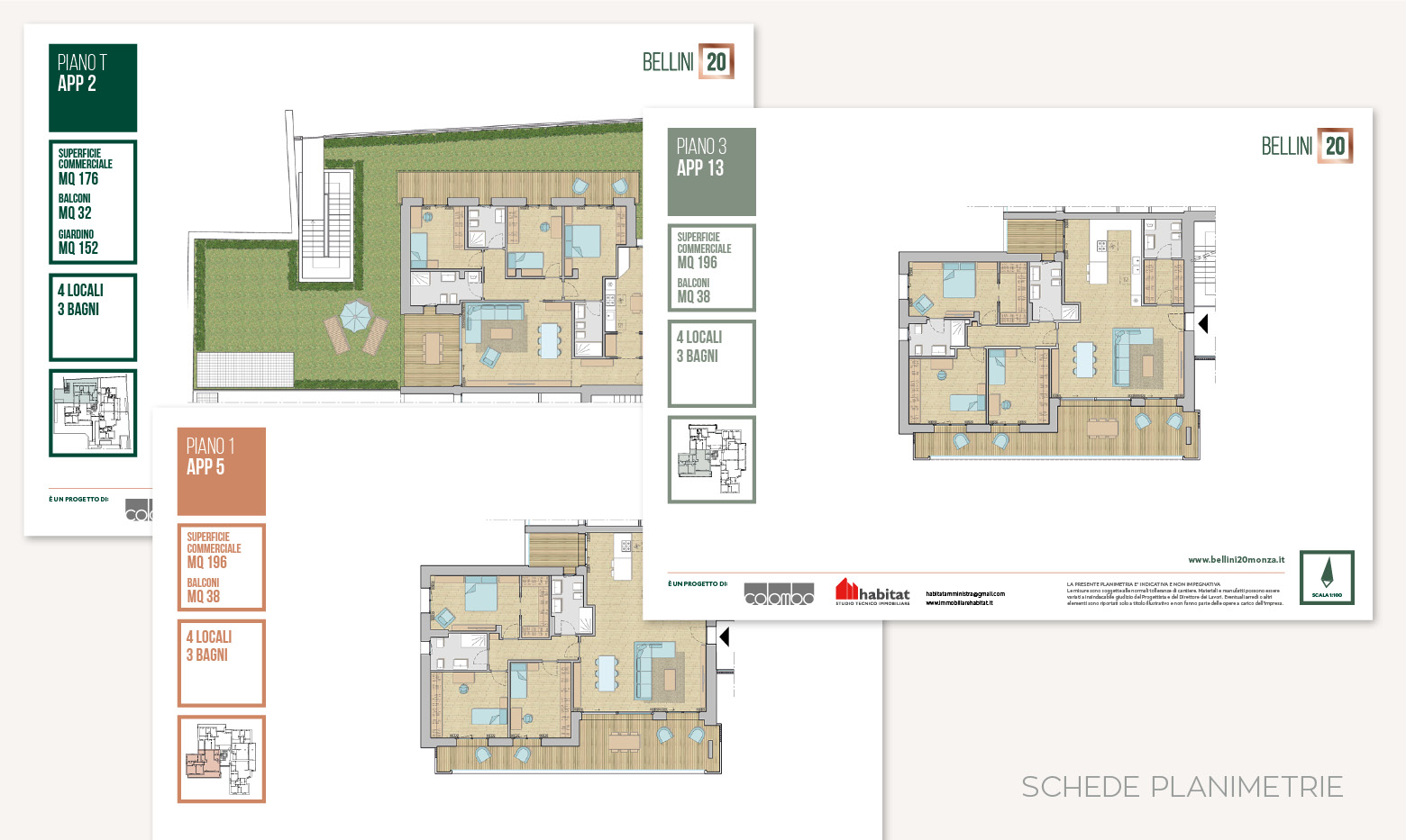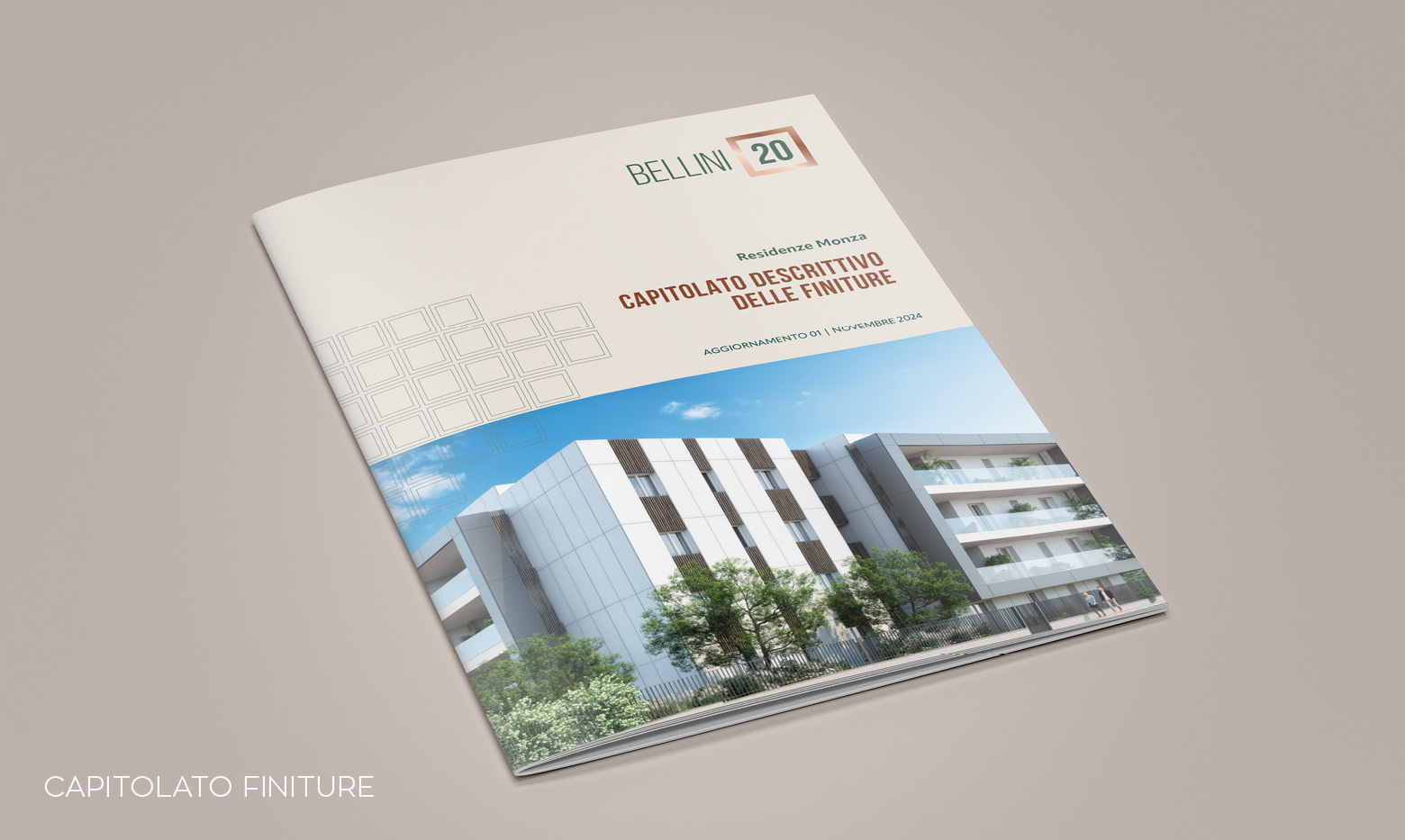 Abbiamo inoltre progettato il capitolato tecnico, le schede delle planimetrie degli appartamenti e il materiale per le affissioni nella città di Monza.